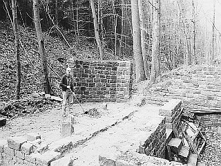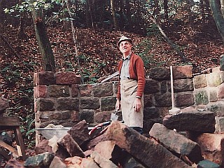 Mit E. J. Roth habe ich die Fundamente für die von mir gedachte überdachte Sitzgruppe ausgehoben und am 21.7.1994 mit Alban Schwenk und E. J. Roth ein Kubikmeter Beton als Fundament eingebracht. Am 2.9.1994 habe ich mit E. J. Roth begonnen die Sitzgruppe zu mauern. Bis zum 3.11.1994 habe ich allein in ca. zehn halben Tagen die Mauern der Sitzgruppe hochgezogen. Oft waren die Tage so neblig und trüb, dass ich kaum die Richtung erkannte.